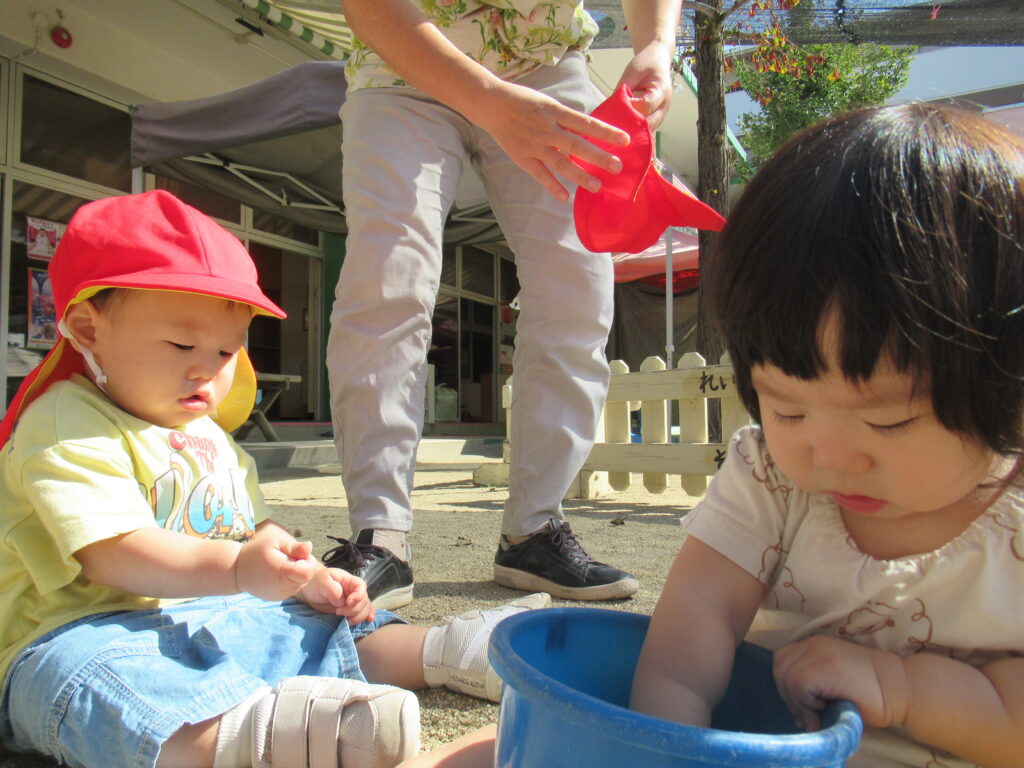 日中はまだ暑い日が続きますが、朝晩はすっかり涼しくなり秋を感じられるようになりました。ひよこ組の子ども達は秋ならではの遊びや秋の自然物を使った製作活動を楽しんでいます!