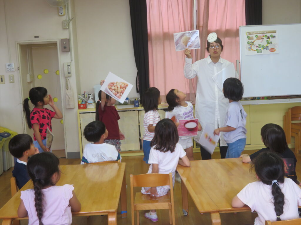 みんなで田植えに挑戦しました。事前にお米博士とお米のことについて勉強をしてから、いざチャレンジ!少し不安がる様子を見せながらも、初めての体験に喜んでいました。今後はかかしを製作したり、稲刈りを行う予定です。美味しいお米に育ちますように!
