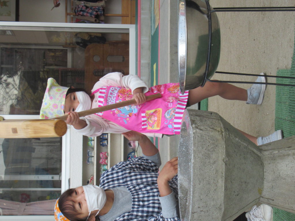 今年は、感染症対策を強化して、年長児のみでもちつきを楽しみました。