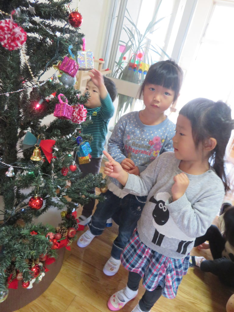 クリスマスツリーに飾り付け♪「プレゼント何にしようかな?