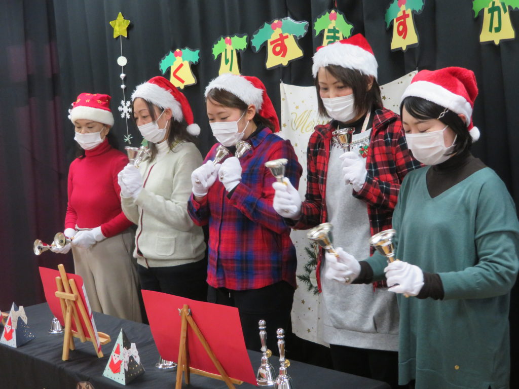 先生たちのハンドベル演奏や、クイズ、ダンスを1クラスずつ交代で楽しみました。